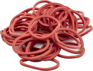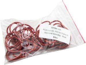 Klasické malé gumičky pro běžné použití v domácnosti o průměru 2 cm a velikosti balení 50 kusů.