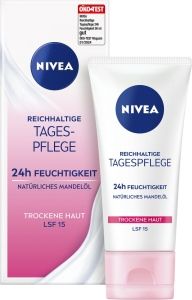 Nivea Essential Výživný denní krém SPF 15 nabízí komplexní péči pro suchou a citlivou pleť.